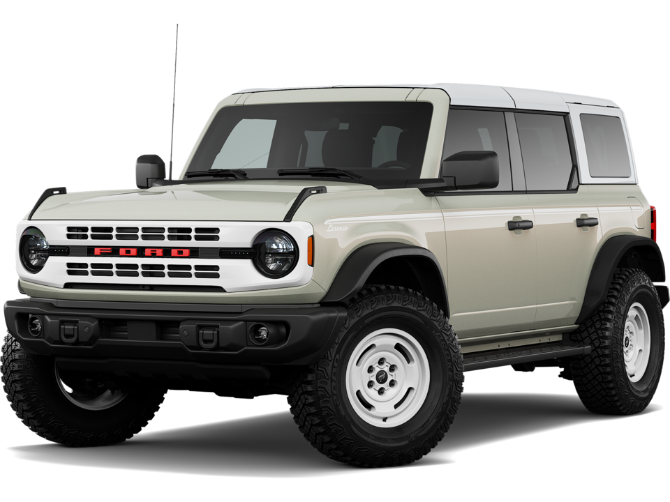 Heritage Edition: Celebrates the Ford Bronco legacy with unique white wheels and plaid cloth heated seats.